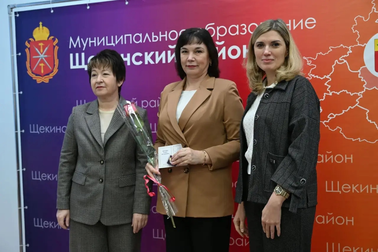 В зале заседаний администрации муниципального образования Щекинский район за заслуги в труде и продолжительную работу в сфере образования Зотова Елена Валерьевна, заместитель директора ЦДТ, была награждена ведомственной наградой - знаком отличия Министерства просвещения Российской Федерации «Отличник просвещения».